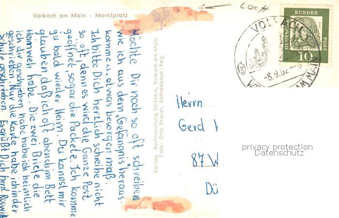 73608701 alte Postkarte Volkach Marktplatz postalisch gelaufen Erhaltung siehe scans [WerneD78] KatCode: 11110009675174
