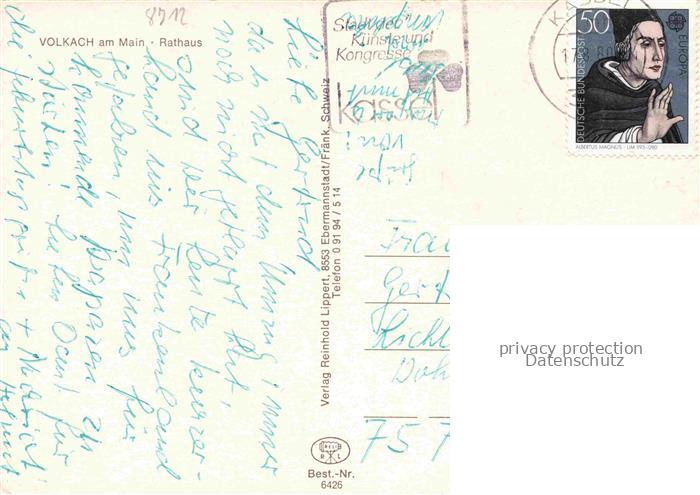 74054347 alte Postkarte Volkach Rathaus Brunnen postalisch gelaufen Erhaltung siehe scans [WerneD78] KatCode: 11110009675174