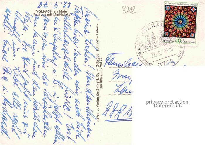 74054886 alte Postkarte Volkach Rathaus mit Marktplatz postalisch gelaufen Erhaltung siehe scans [WerneD78] KatCode: 11110009675174