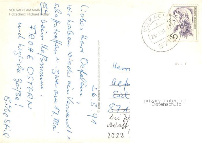 73777434 alte Postkarte Volkach Rathausplatz Richard Rother Holzschnitt Kuenstlerkarte postalisch gelaufen Erhaltung siehe scans [FriedD77] KatCode: 11110009675174