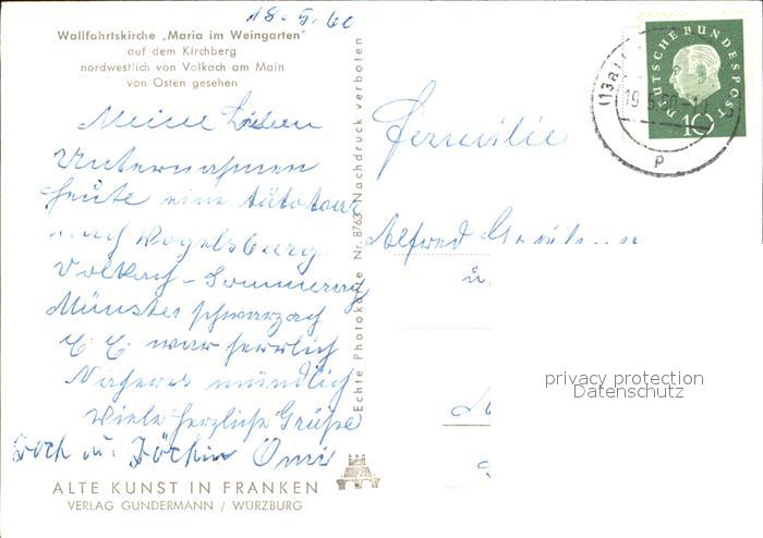 72506367 alte Postkarte Volkach Wallfahrtskirche Maria im Weingarten postalisch gelaufen Erhaltung siehe scans KatCode: 11110009675174