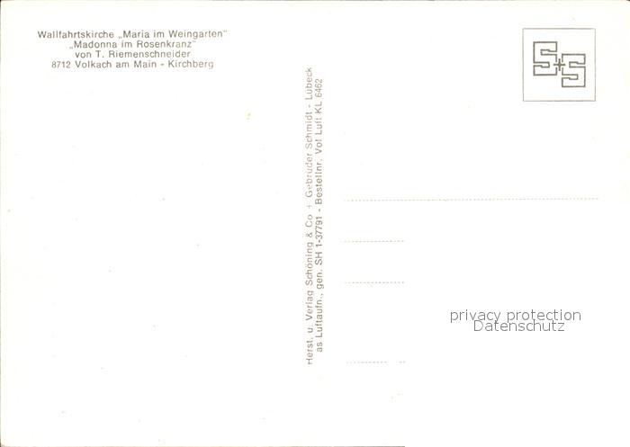 72579768 Volkach Wallfahrtskirche Maria im Weingarten Rosenkranz Madonna Riemenschneider postalisch nicht gelaufen Erhaltung siehe scans [KathaD79] KatCode: 11110009675174