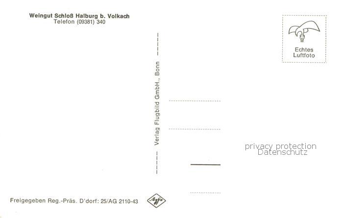 73777041 Volkach Weingut Schloss Halburg postalisch nicht gelaufen Fliegeraufnahme Erhaltung siehe scans [FriedD77] KatCode: 11110009675174