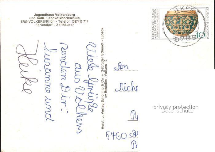 72577768 alte Postkarte Volkers Bad Brueckenau Feriendorf Zelthaeuser Jugendhaus Volkersberg Kath. Landvolkhochschule postalisch gelaufen Erhaltung siehe scans [FriedD77] KatCode: 11110009672113