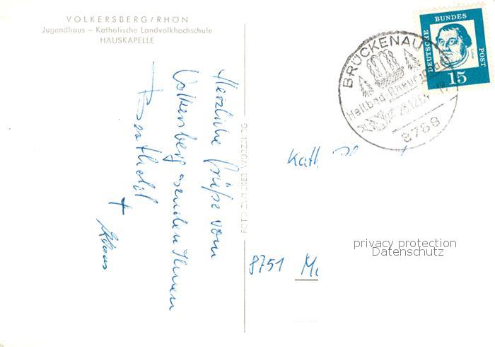 73866369 alte Postkarte Volkers Bad Brueckenau Jugendhaus Volkersberg Katholische Landvolkhochschule Hauskapelle postalisch gelaufen Erhaltung siehe scans [FriedD77] KatCode: 11110009672113