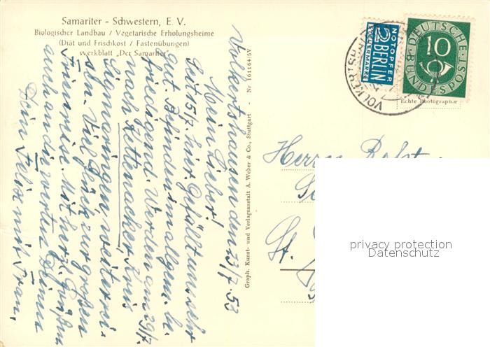 33612251 alte Postkarte Volkertshausen Vegetarisches Erholungsheim Samariter-Schwestern e.V. Baumbluete postalisch gelaufen Erhaltung siehe scans [FriedD77] KatCode: 11110008335081
