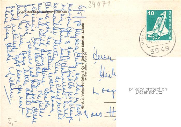 72959839 alte Postkarte Volkmarsen Burgschwimmbad postalisch gelaufen Erhaltung siehe scans [WerneD78] KatCode: 11110006635020