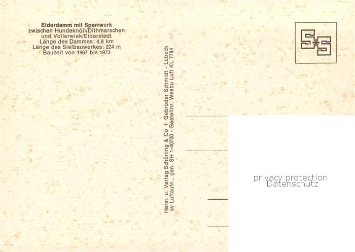 73228472 Vollerwiek Eiderdamm mit Sperrwerk Fliegeraufnahme postalisch nicht gelaufen Erhaltung siehe scans [FriedD77] KatCode: 11110001054145