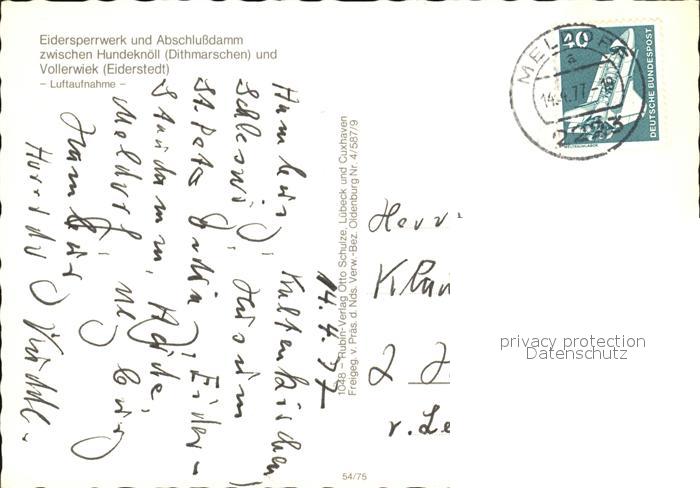 alte Postkarte Vollerwiek Eidersperrwerk Abschlussdamm Fliegeraufnahme postalisch gelaufen Erhaltung siehe scans