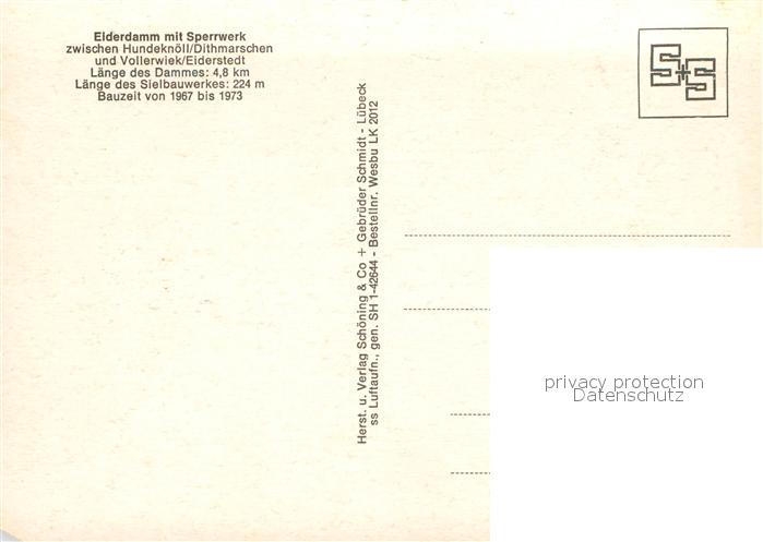 72940100 Vollerwiek Fliegeraufnahme Eiderdamm Sperrwerk postalisch nicht gelaufen Erhaltung siehe scans [KathaD81] KatCode: 11110001054145
