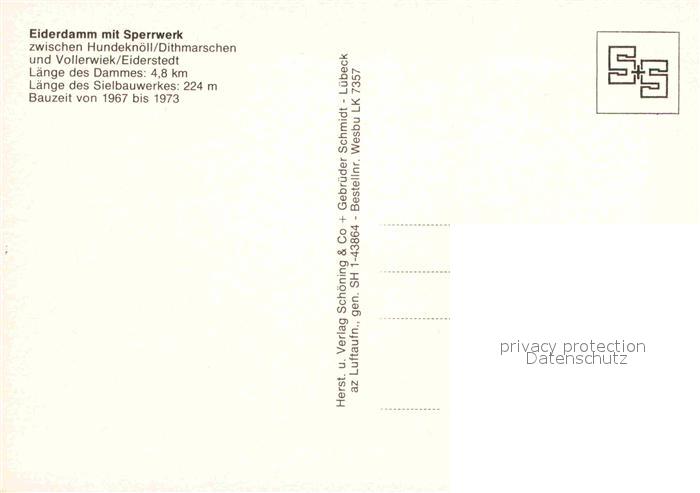 72666776 Vollerwiek Fliegeraufnahme Eiderdamm postalisch nicht gelaufen Erhaltung siehe scans [AndreD76] KatCode: 11110001054145