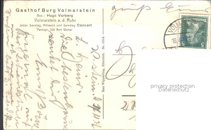 72147225 alte Postkarte Volmarstein Burg Volmarstein Gasthof Ruhr postalisch gelaufen Erhaltung siehe scans KatCode: 11110005954032