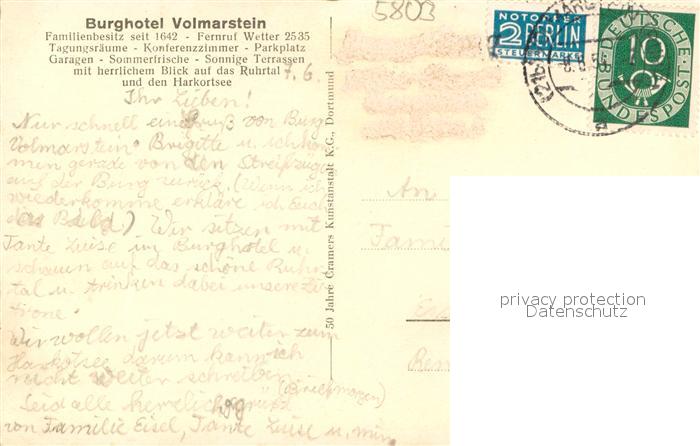 73698769 alte Postkarte Volmarstein Burgruine mit Ruhrtal postalisch gelaufen Erhaltung siehe scans [LiesaD40] KatCode: 11110005954032
