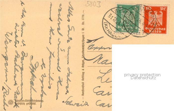 73749377 alte Postkarte Volmarstein Kuenstler Steinzeichnung postalisch gelaufen Erhaltung siehe scans [WerneD78] KatCode: 11110005954032