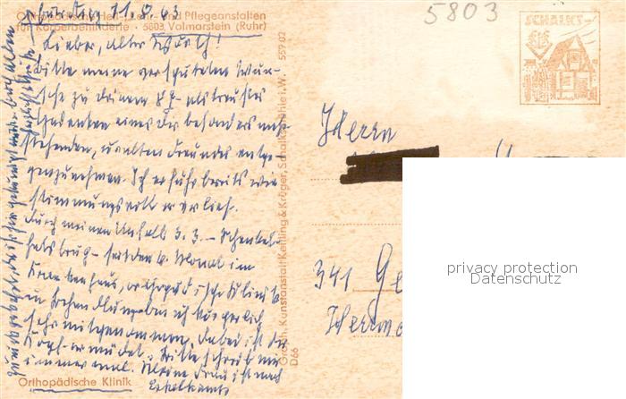 73698759 Volmarstein Orthopaedische Heil-Lehr,-und Pflegeanstalten fuer Koerperbehinderte Klinik postalisch nicht gelaufen Erhaltung siehe scans [LiesaD40] KatCode: 11110005954032