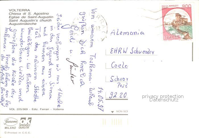 old postcard Volterra Augustuskirche postalisch gelaufen Erhaltung siehe scans