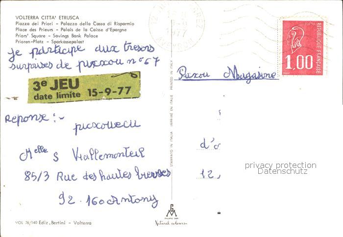 old postcard Volterra Citta Etrusca Piazza dei Priori Palazzo della Cassa di Risparmio postalisch gelaufen Erhaltung siehe scans