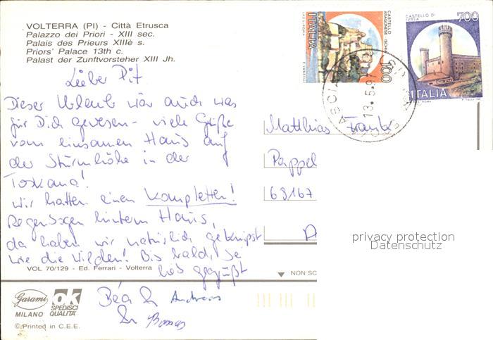 old postcard Volterra Palast Zunftvorsteher XIII postalisch gelaufen Erhaltung siehe scans