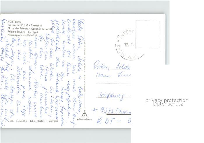 old postcard Volterra Priorenplatz postalisch gelaufen Erhaltung siehe scans