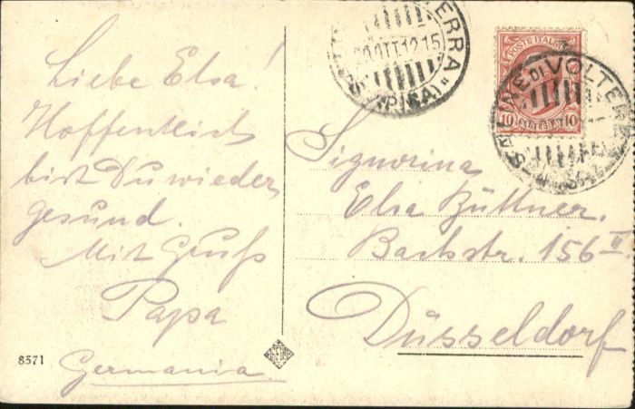old postcard Volterra Veduta Generale della Forteza postalisch gelaufen