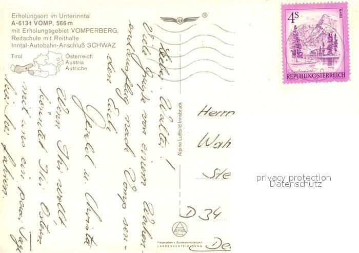 13218741 alte Postkarte Vomp Tirol Fliegeraufnahme Reitschule Reithalle Inntal postalisch gelaufen Erhaltung siehe scans [LiesaD40] KatCode: 11390335070936