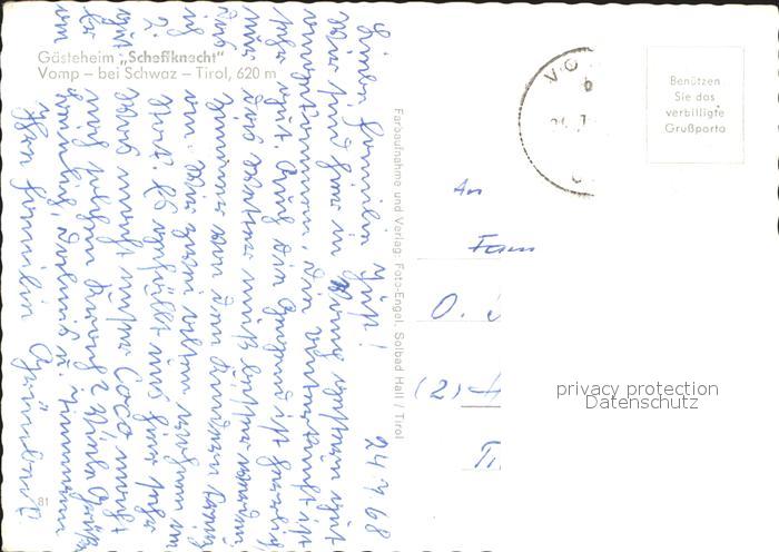 71958393 alte Postkarte Vomp Tirol Gasthaus Scheffknecht postalisch gelaufen Erhaltung siehe scans KatCode: 11390335070936
