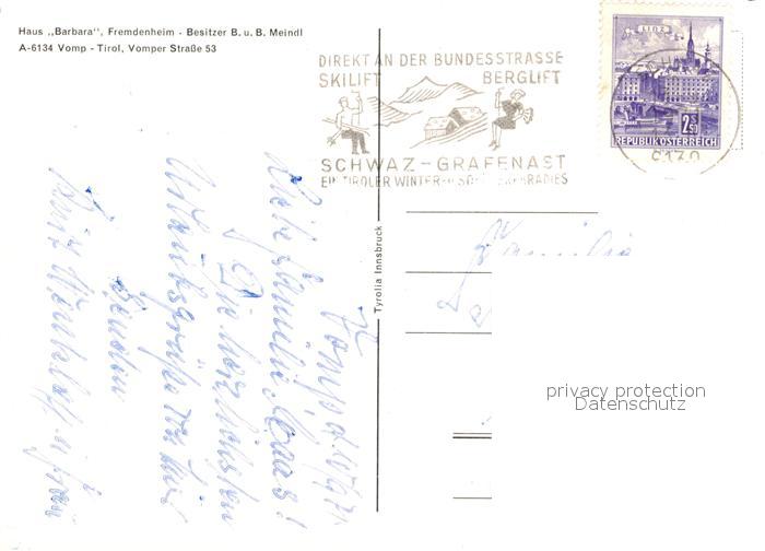 73482315 alte Postkarte Vomp Tirol Haus Barbara Fremdenheim postalisch gelaufen Erhaltung siehe scans [KathaD81] KatCode: 11390335070936