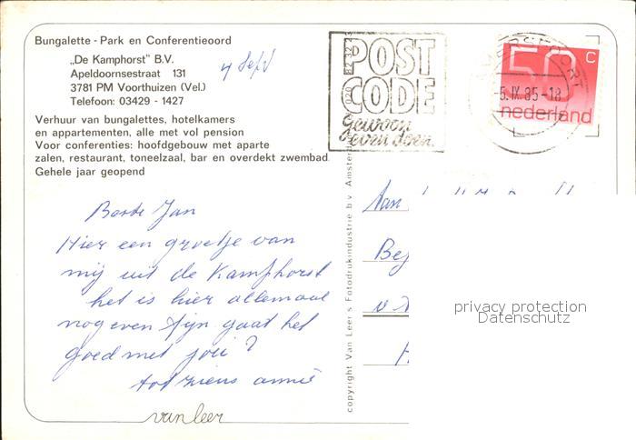 old postcard Voorthuizen Bungalette Park De Kamphosrt B.V. postalisch gelaufen Erhaltung siehe scans [LiesaD40]