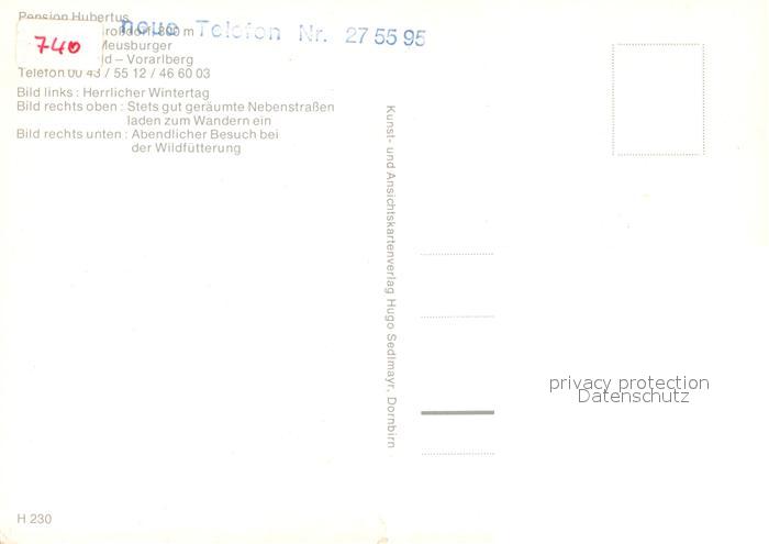73160949 Vorarlberg Pension Hubertus Pferdeschlitten Wildfuetterung postalisch nicht gelaufen Erhaltung siehe scans [WerneD78] KatCode: 11390342080207