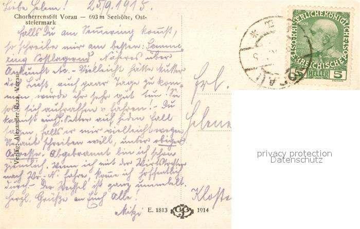43538521 alte Postkarte Vorau Chorherrenstift postalisch gelaufen Erhaltung siehe scans [PaolaD17] KatCode: 11390224060745