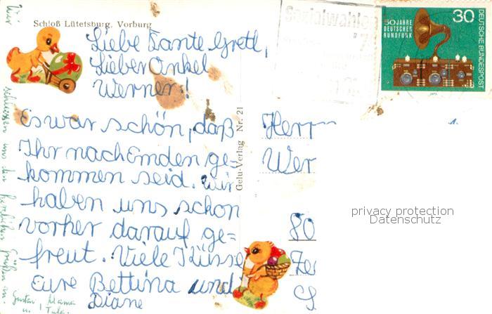 73767937 alte Postkarte Vorburg Trittau Schloss Luetetsburg postalisch gelaufen Erhaltung siehe scans [WerneD78] KatCode: 11110001062082