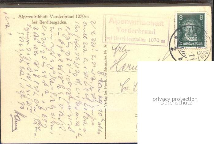 71838828 alte Postkarte Vorderbrand Alpenwirtschaft postalisch gelaufen KatCode: 11110009172116