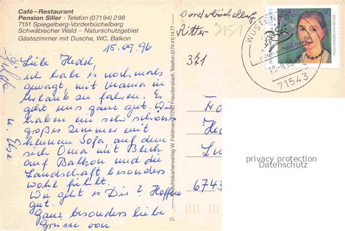 74053215 alte Postkarte Vorderbuechelberg Spiegelberg Cafe Restaurant Pension Siller Gastraeume Terrasse Garten postalisch gelaufen Erhaltung siehe scans [WerneD78] KatCode: 11110008119069