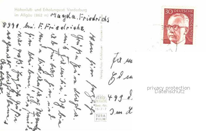 72776309 alte Postkarte Vorderburg Immenstadt Kirche postalisch gelaufen Erhaltung siehe scans [NatalD47] KatCode: 11110009780137