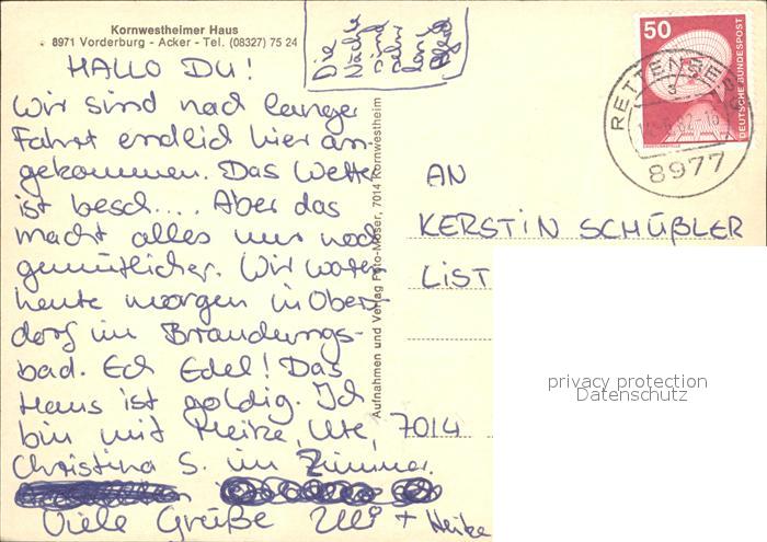 72310561 alte Postkarte Vorderburg Immenstadt Kornwestheimer Haus Gastraum postalisch gelaufen Erhaltung siehe scans KatCode: 11110009780137