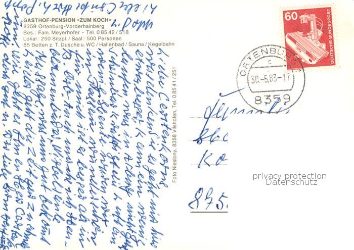 73654717 alte Postkarte Vorderhainberg Gasthof Pension Zum Koch Restaurant Kegelbahn Hallenbad postalisch gelaufen Erhaltung siehe scans [FriedD77] KatCode: 11110009275138