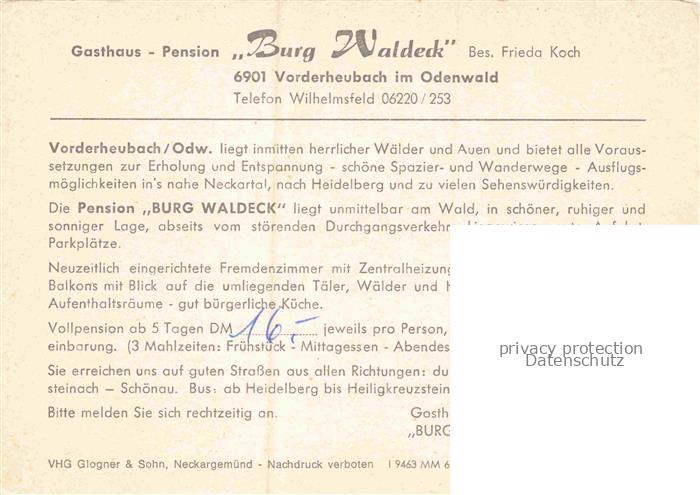 74048603 Vorderheubach Gasthaus Burg Waldeck Gastraeume Gartenwirtschaft postalisch nicht gelaufen Werbekarte (keine Postkarte) Erhaltung siehe scans [WerneD78] KatCode: 11110008226029