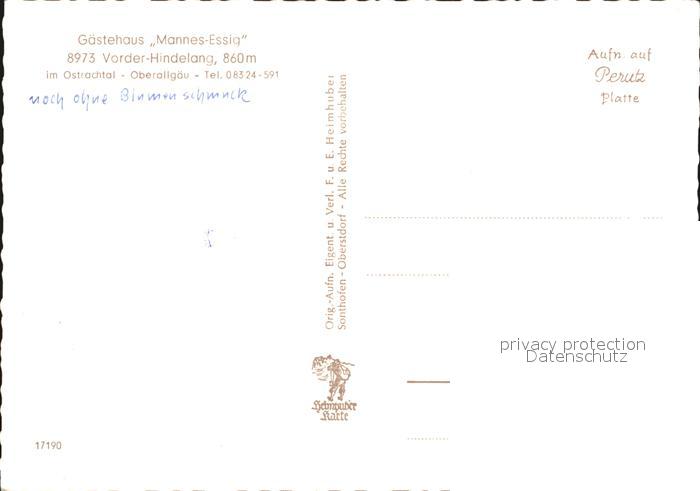 72468506 Vorderhindelang Gaestehaus Mannes Essig postalisch nicht gelaufen Erhaltung siehe scans KatCode: 11110009780123