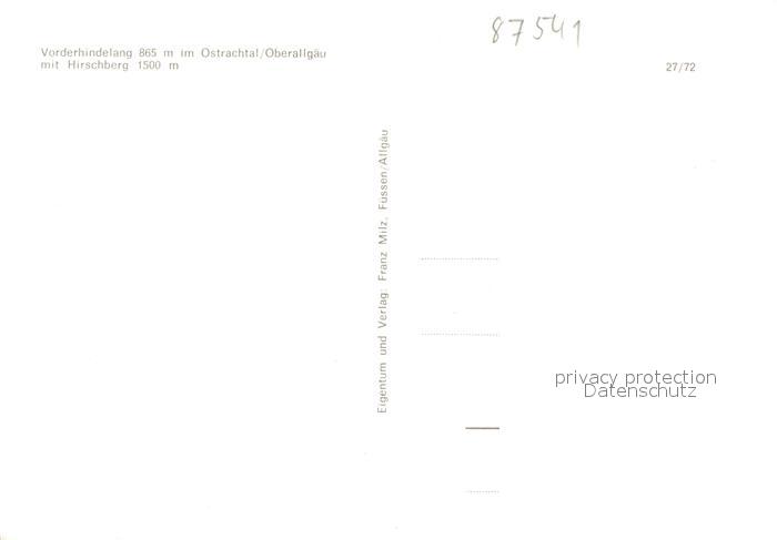73105742 Vorderhindelang Hirschberg postalisch nicht gelaufen Erhaltung siehe scans [KathaD81] KatCode: 11110009780123