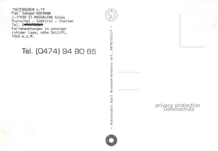 74100504 Vorderhuben St Magdalena Pustertal Bolzano Suedtirol IT Panorama Gaestehaus Ferienwohnungen postalisch nicht gelaufen Erhaltung siehe scans [FriedD77] KatCode: 11240