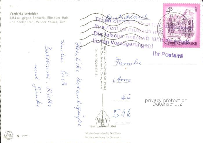 72234509 alte Postkarte Vorderkaiserfelden Sonneck Karlspitzen Wilder-Kaiser postalisch gelaufen Erhaltung siehe scans KatCode: 11390332070368