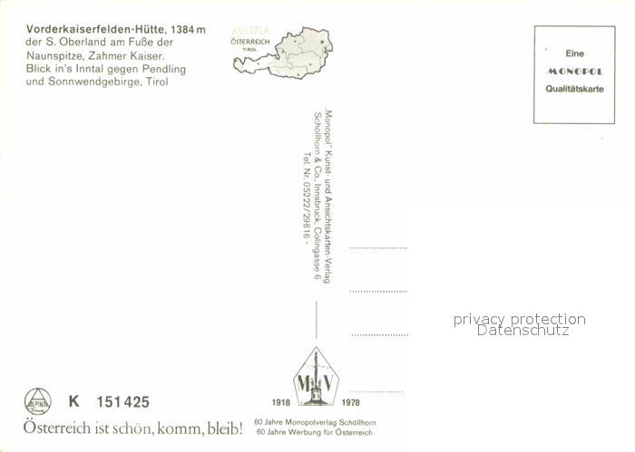 72619672 Vorderkaiserfeldenhuette am Fusse der Naunspitze Zahmer Kaiser Inntal Pendling Sonnwendgebirge Fernsicht postalisch nicht gelaufen Erhaltung siehe scans [FriedD77] KatCode: 11390332070368