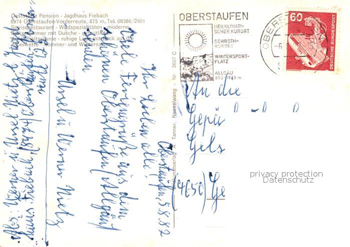73017883 alte Postkarte Vorderreute Oberstaufen Gaststaette Jagdhaus Fiebach postalisch gelaufen Erhaltung siehe scans [WerneD78] KatCode: 11110009780132