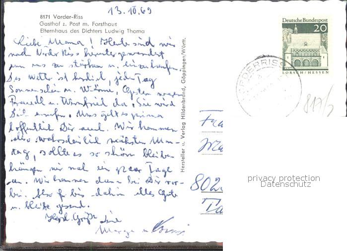 72142451 alte Postkarte Vorderriss Gasthaus zur Post mit Forsthaus Elternhaus von Ludwig Thoma postalisch gelaufen Erhaltung siehe scans KatCode: 11110009173135