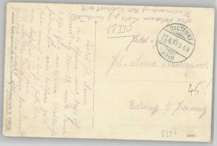 40218188 Vordersarling Rott Gasthof Weiss Feldpost x 1916 KatCode 11110009277151