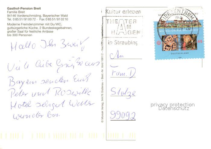 73642939 alte Postkarte Vorderschmiding Gasthof Pension Breit Festsaal postalisch gelaufen Erhaltung siehe scans [FriedD77] KatCode: 11110009272126