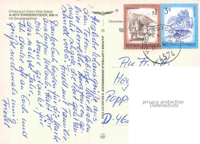74156126 alte Postkarte Vorderstoder AT Panorama Erholungsort im Pyhrn-Priel-Gebiet postalisch gelaufen Fliegeraufnahme Erhaltung siehe scans [FriedD77] KatCode: 11390314040921