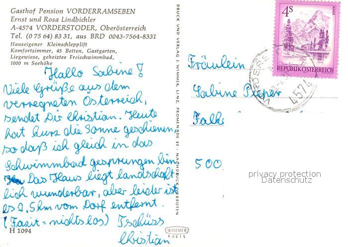 12983784 alte Postkarte Vorderstoder Gasthof Teilansicht Schwimmbad Kirche postalisch gelaufen Erhaltung siehe scans [AndreD76] KatCode: 11390314040921