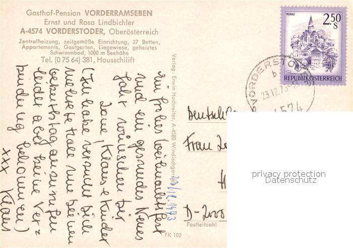 73034372 alte Postkarte Vorderstoder Gasthof Vorderramseben postalisch gelaufen Erhaltung siehe scans [PaolaD17] KatCode: 11390314040921
