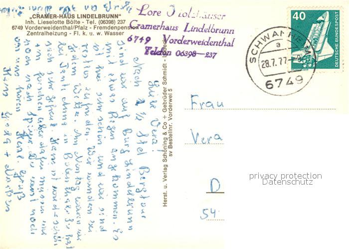 73087810 alte Postkarte Vorderweidenthal Cramer Haus Lindelbrunn postalisch gelaufen Erhaltung siehe scans [KathaD81] KatCode: 11110007337079